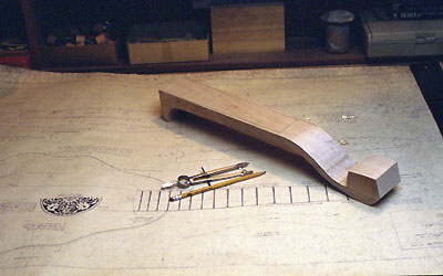 When planning out an instrument, care must be taken not to slavishly imitate surviving instruments since these are rarely an accurate representation of the instruments actually used by professional and serious amateur musicians in any given era. Typically, the more ornate instruments survived and the plain ones were either rebuilt into something else or discarded. There are only four surviving instruments that are considered to have been vihuelas - the well-known example in the Musée Jacquemart-Andrée, the very enigmatic instrument in the Iglesia de la Compañiz de Jesús de Quito, in Quito, Ecuador, and the recently re-discovered 'Chambure' instrument in the Cité de la Musique (with a deeply fluted back). A fourth instrument, the 1581 Belchior Dias guitar in the Royal College of Music, London, is now considered by some luthiers to have been a vihuela at one point in its life. It also has a deeply fluted back. (See The Belchior Diaz Vihuela) The first two instruments I mentioned may not actually be vihuelas, but six-course guitars from a later period. This has never been settled and probably never will be.
