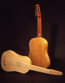 Since there are only three surviving instruments that appear to be vihuelas, a lot of decisions have to be made about which features to include and which to ignore. To produce a really successful vihuela, the maker must be familiar with the music and the demands of the composers. Fortunately, vihuela music exists in tablature (which is less ambiguous than modern notation) and there are some fairly clear early books about performance practices1. You would not, for instance, build a vihuela with 8 or 10 courses since no music exists for this configuration. You might not want to use wound base strings on a vihuela because it increases the sustain of the low notes. A quick decay increases the ability of the performer to bring a high degree of subtlety and expressiveness to the varied voices of the polyphonic vihuela music. A long decay in the base makes the sound muddy, overpowers the trebles, and results in textures that are less clear. Some customers insist on wound strings anyway, because they are used to the sound and because twisted gut bases are quite expensive. Modern builders are forced to make concessions in response to market forces--a poor argument for building unauthentic instruments, but there it is. I am so glad that I no longer build professionally and have to reconcile the demands of historical accuracy with the needs of modern players! Almost all instrumental music is composed with the sounds and capabilities of the instrument in mind. A composer and performer will milk the instrument for all the tone colors and expression that he can get from it. If any part of the instrument is modernized, the modern performer may not be able to rediscover the sounds and textures that early composers found so exciting and exploited in their music. When I was at the Royal Academy studying lute, Diana Poulton used to explain that the vihuela replaced the lute in Spain in a very short time. When the Moors were driven out of the Iberian Peninsula, it suddenly became politically incorrect, if not dangerous, to play a Moorish instrument. The lute vanished and was replaced by the vihuela. Coincidentally, the description of the court musicians in Spain described in the 1480’s as lutenists changed almost overnight to vihuelists by 1500.